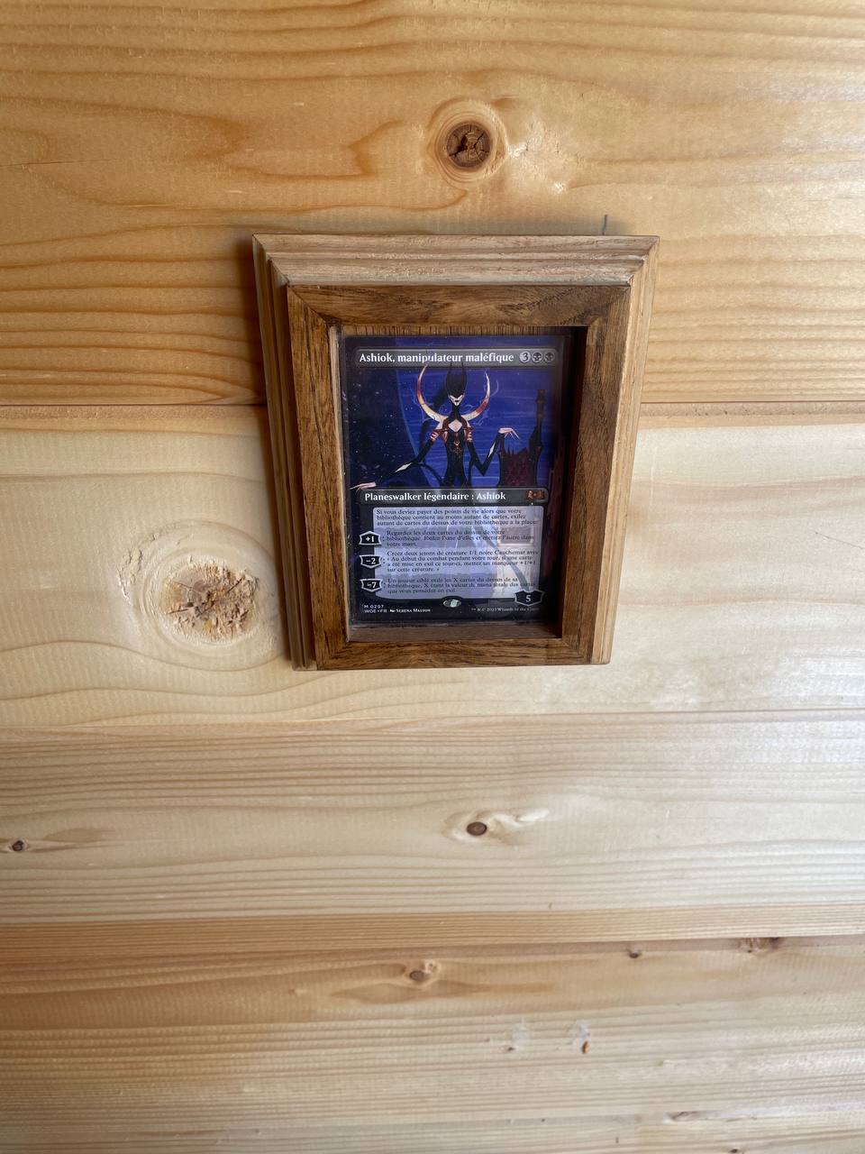 Sublimez vos cartes de collection avec ce cadre en bois, conçu pour les exposer avec élégance tout en les protégeant. Fait main, ce cadre mettra en valeur vos trésors tout en s’intégrant parfaitement dans n’importe quel espace.